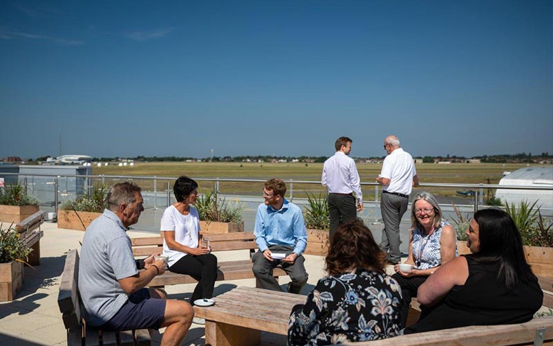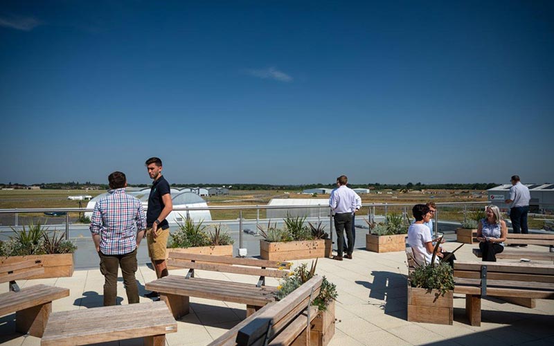 The meeting facilities have all the tech you need, plenty of internal and external space for mingling (which overlooks the airfield which is very popular amongst our clients) and a brilliant self-serve tea and coffee area.